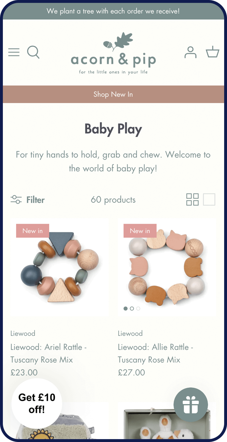 With an existing site on the WordPress platform, Acorn & Pip required a full store migration to Shopify, including revamped design and improved customer experience. We set up the store using creative graphics and custom templates but all with native tools and features to make store management a breeze.